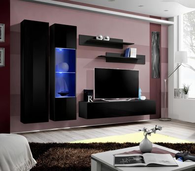Schwarz Wohnwand Wohnzimmer Designer Modern Möbel TV Ständer