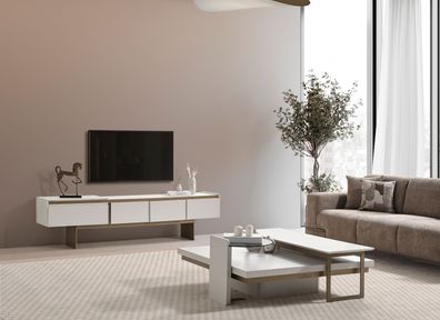 Wohnzimmer TV Ständer Design Weiß Holzmöbel Modern Einrichtung