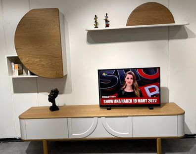 Moderner TV-Ständer aus Holz in Beige für Wohnzimmer
