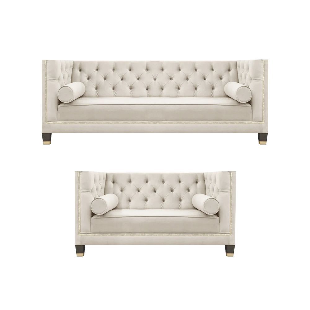 Wohnzimmer Weiß Chesterfield Sofas Dreisitzer + Zweisitzer Couch Garnitur 3 + 2