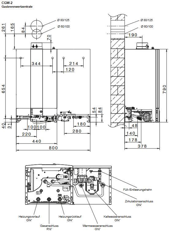 WOLF Gasbrennwert Zentrale CGW-2-14/100L mit Hochleistungsschichtenspeicher