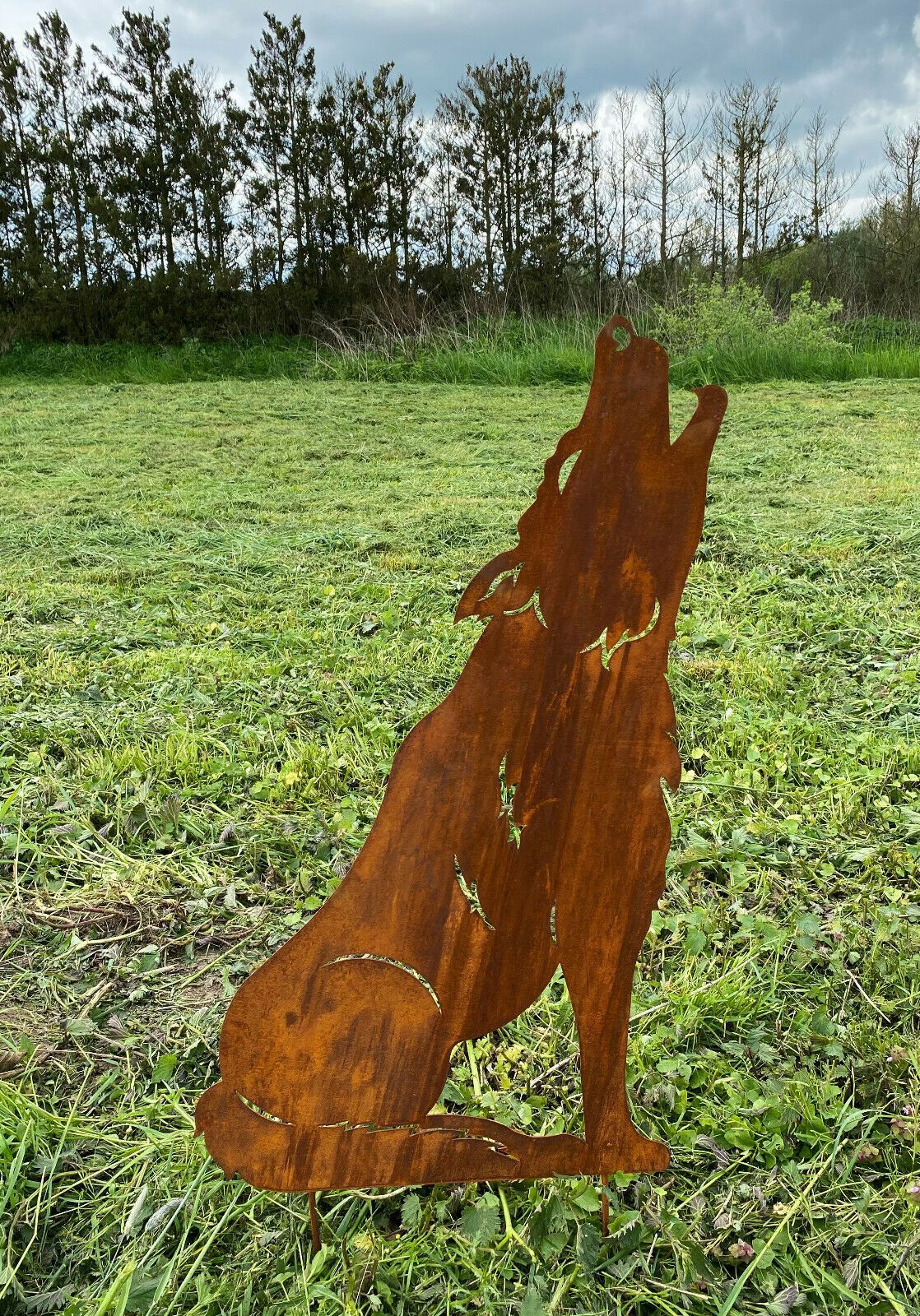 Wolf heulend 75x48cm Edelrost Gartenstecker Rost Metall Rostfigur Vollmond Hund