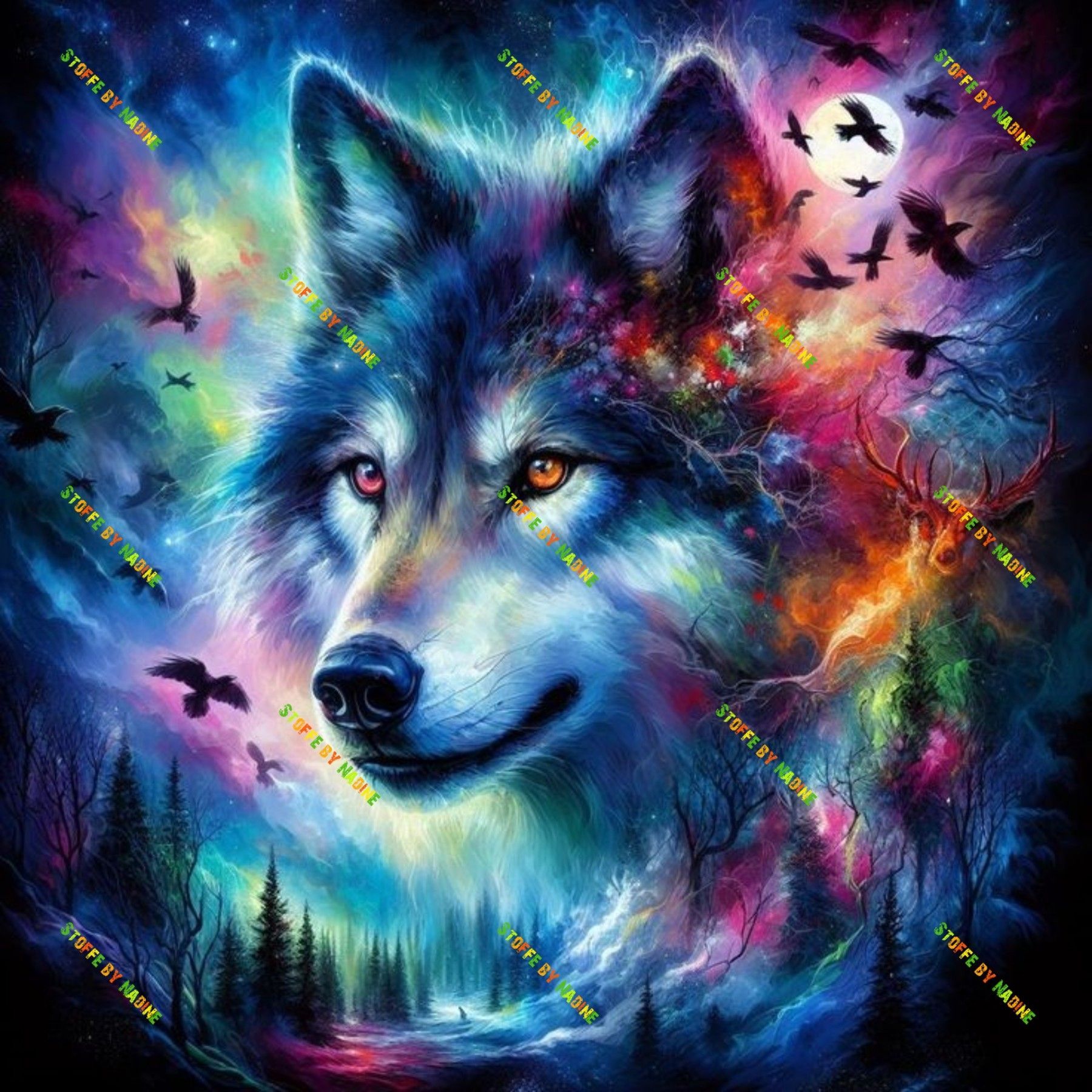 Wolf Panel 50 x 50 cm verschiedene Motive Sommersweat teil 2