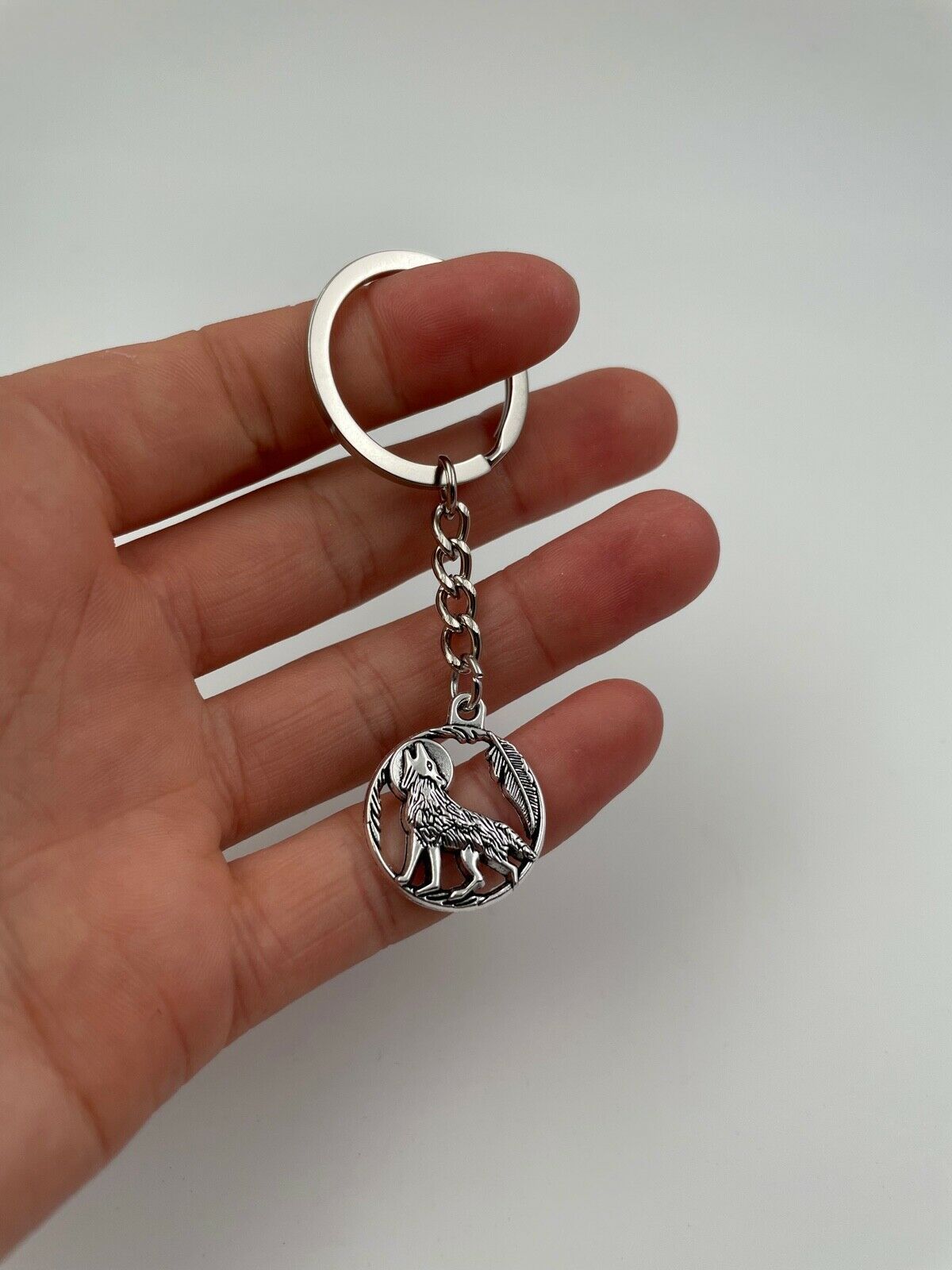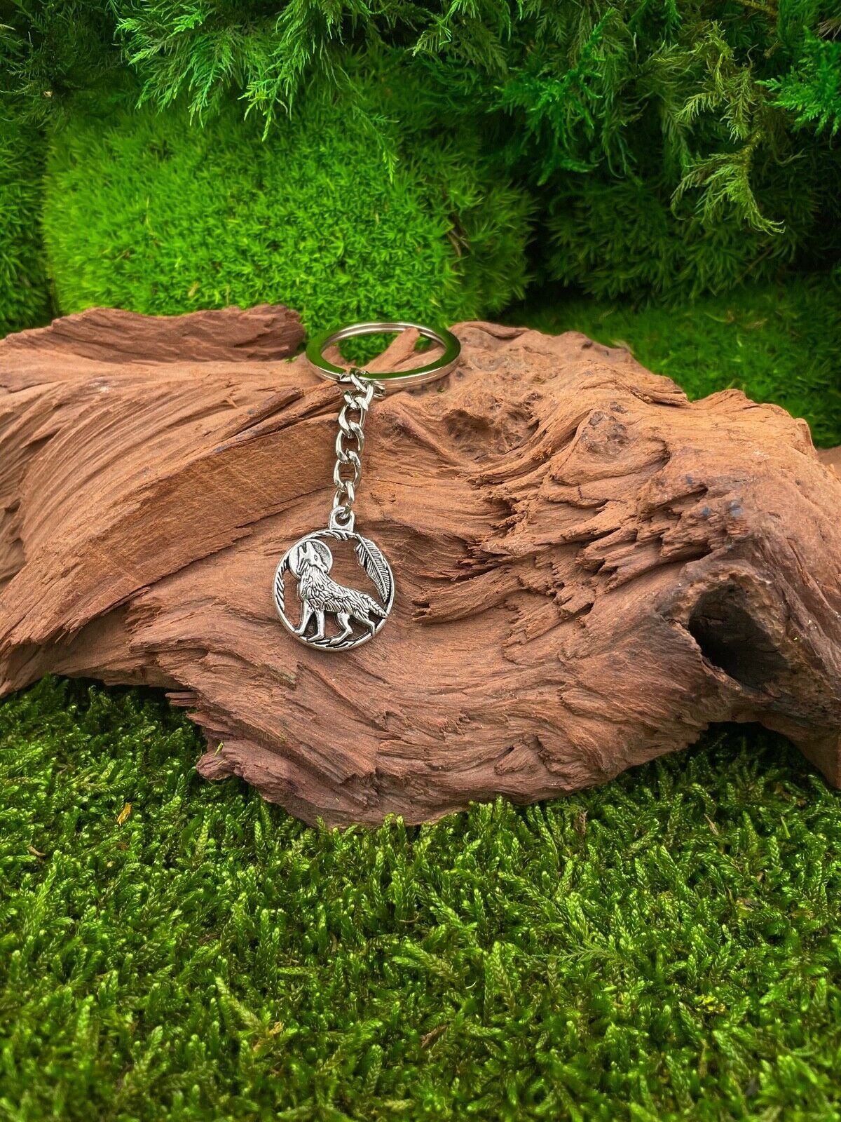 Wolf Vollmond Mitternacht Schlüsselanhänger Metall Glücksbringer Anhänger