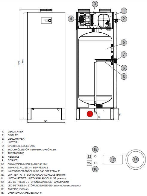 Wolf Warmwasser Wärmepumpe FHS-180 S Brauchwasserwärmepumpe Trinkwassererwärmung