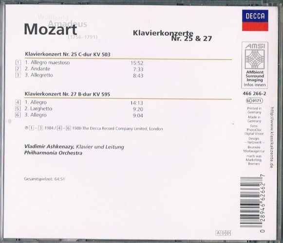 Wolfgang Amadeus Mozart - Klavierkonzerte Nr. 25 & 27 - CD