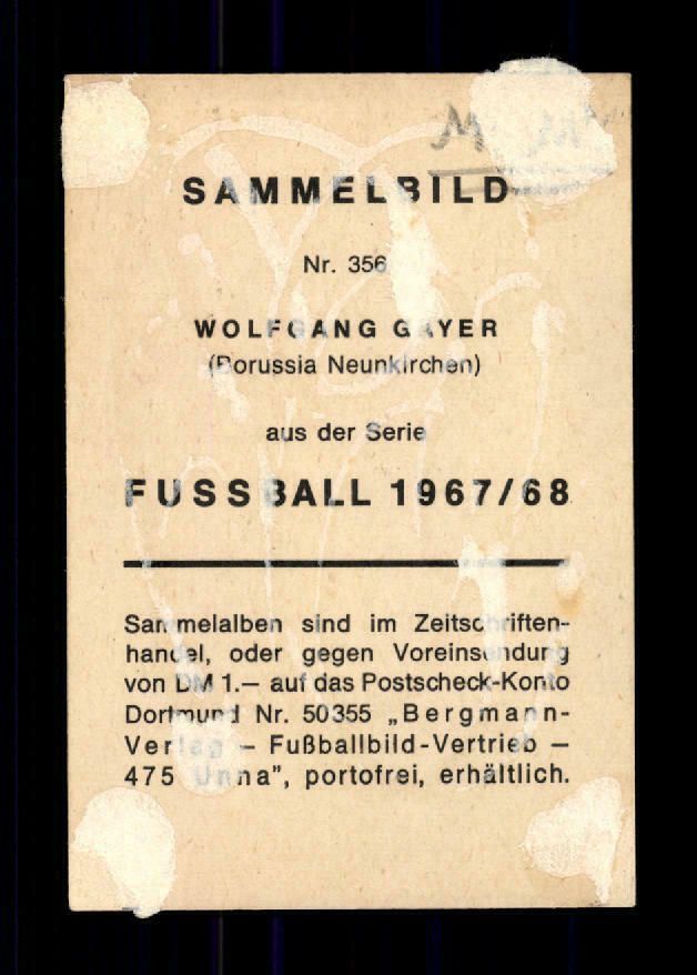Wolfgang Gayer Borussia Neunkirchen Bergmann Sammelbild 1967-68 Original Sign