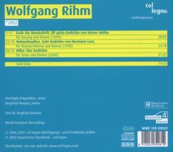 Wolfgang Rihm: 3 Liederzyklen - Wolfgang Rihm - col legno - (