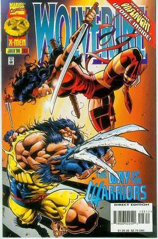 Wolverine 103 Verlag * publisher : Marvel Comics USA Erscheinungsjahr * year of issue: 1996 (Modern Age) Seitenzahl * number or pages: 32 Texter * writer: Larry Hama Zeichner * artists (pencils inks): Val Semeiks Chad Hunt schwarz-weiß oder Farbe * bw or colour: colour Hinweise zum Inhalt * notes of
