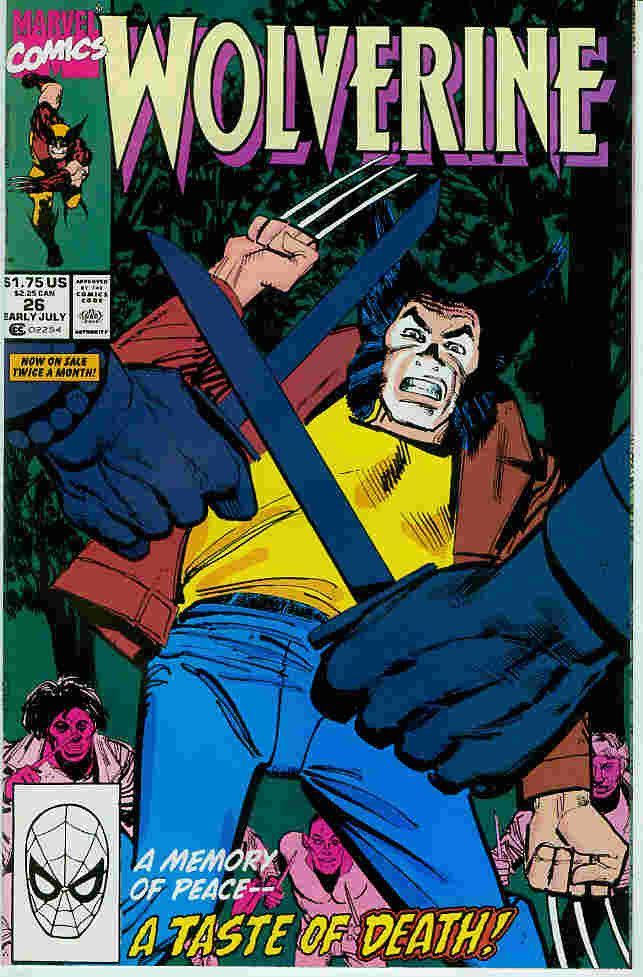 Wolverine 26 Verlag * publisher : Marvel Comics USA Erscheinungsjahr * year of issue: 1990 (Modern Age) Seitenzahl * number or pages: 32 Texter * writer: Jo Duffy Zeichner * artists (pencils inks): Klaus Janson Tom Palmer schwarz-weiß oder Farbe * bw or colour: colour Hinweise zum Inhalt * notes of