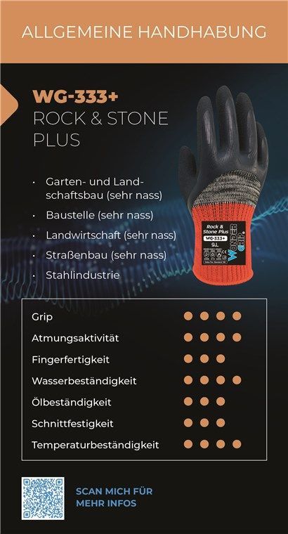 Wonder Grip WG-333+ Arbeitshandschuhe Rock & Stone grau, ot M/8 (Bulk)