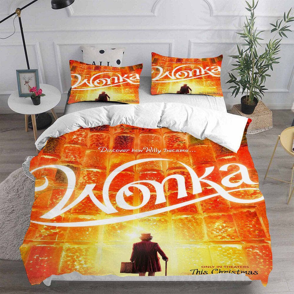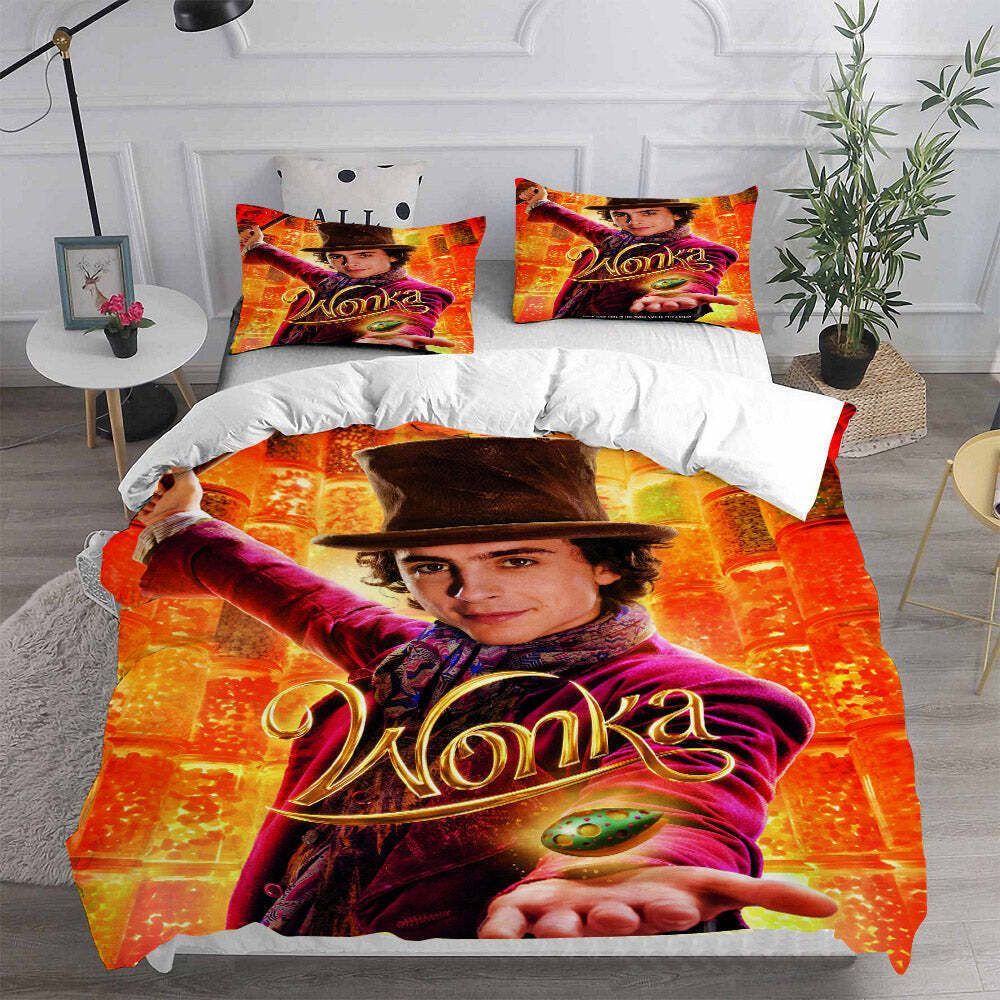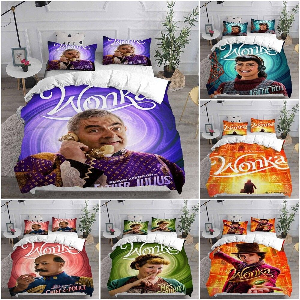 Wonka 3D-Druck Bettbezug Kissenbezuge 2/3pcs Bettwasche-Set Single Double