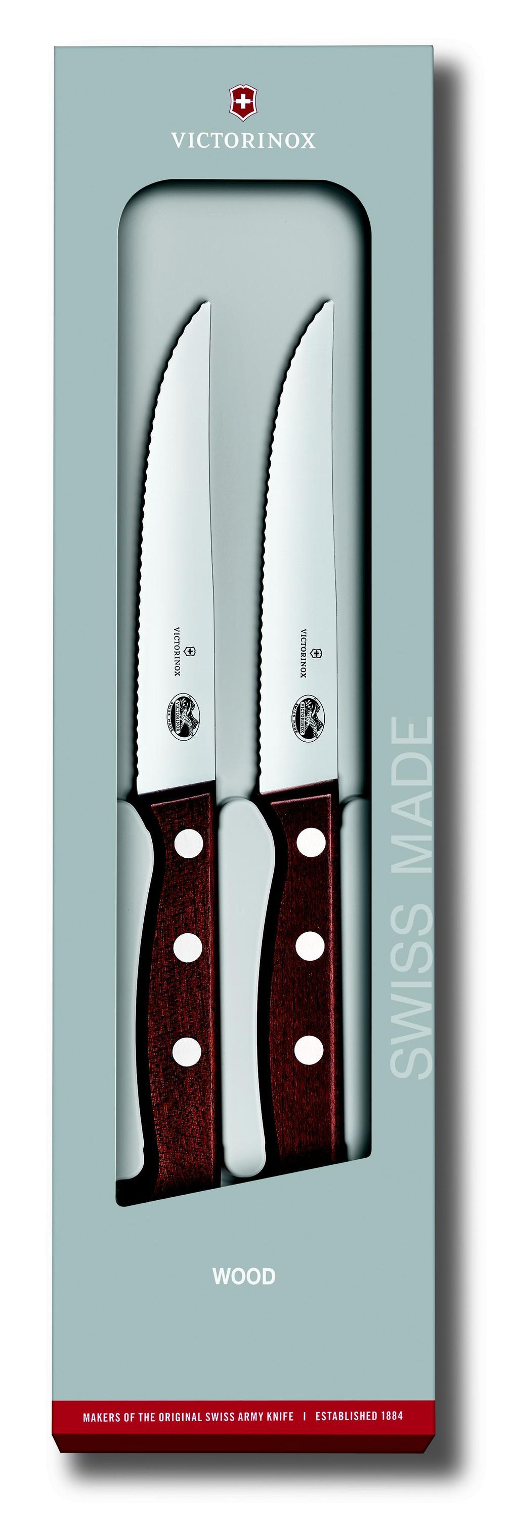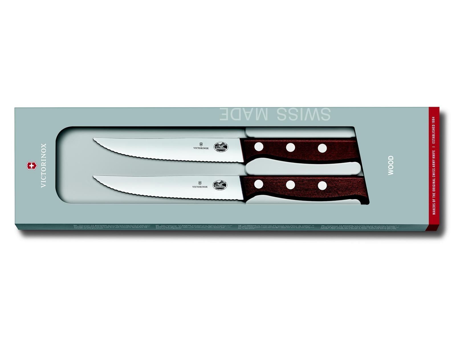 VICTORINOX Wood, Steakmesser Set, 2tlg, 12cm, Wellen, mod. Ahorn, G