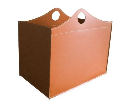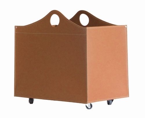 Woodbag Designer Holzkorb Braun aus regeneriertem Leder mit Rollen