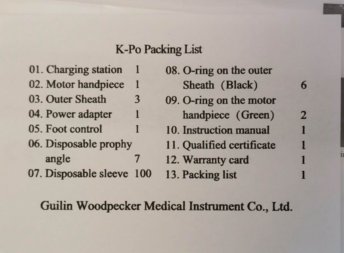 Woodpecker kabelloser Prophy-Motor K-Po, kabellose Pedale,3xAußenmante CE