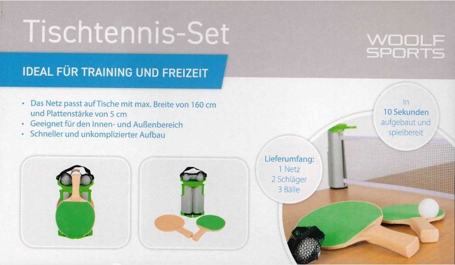 Woolf Sports Tischtennis-Set 2 Tischtennisschläger 1 Netz 3 Bälle