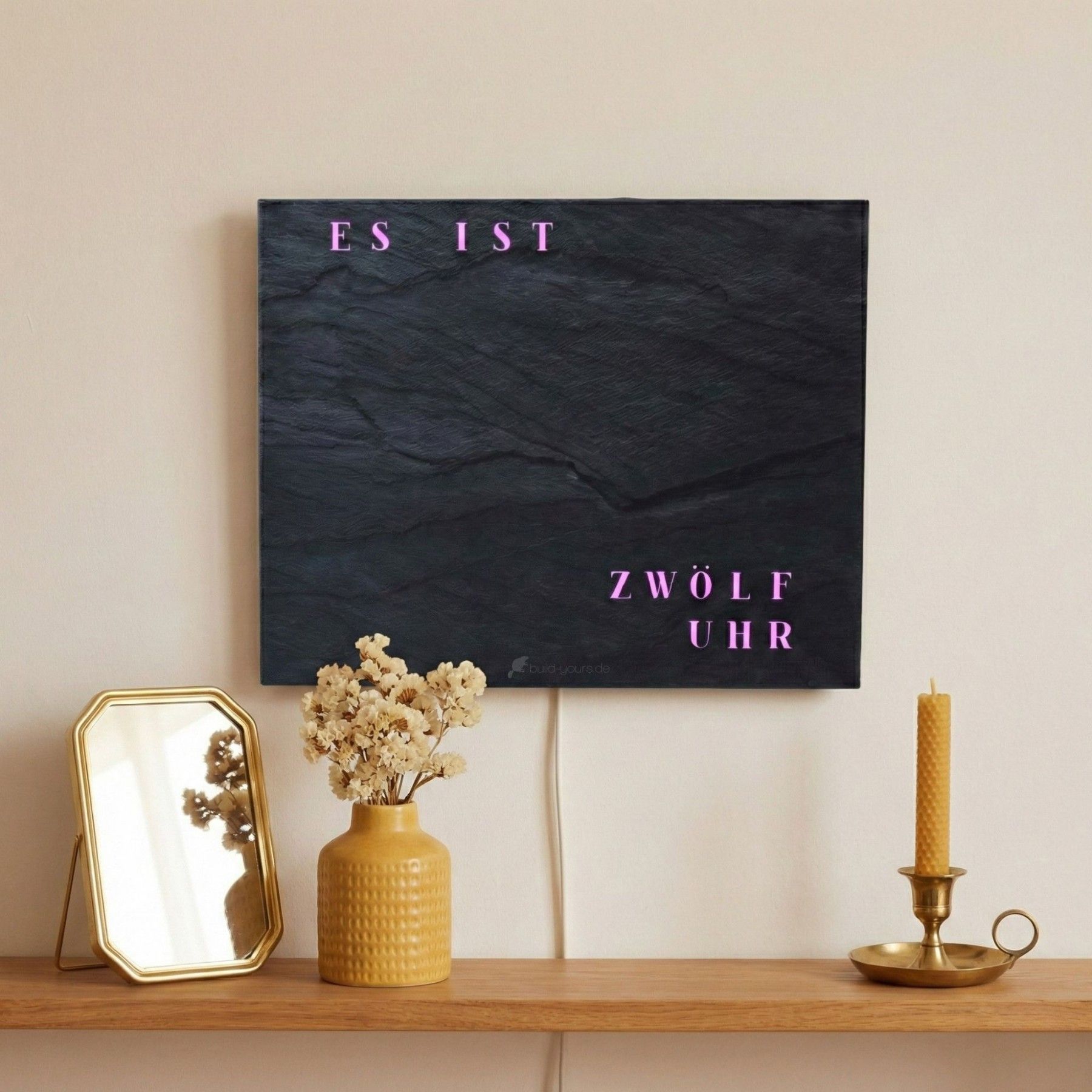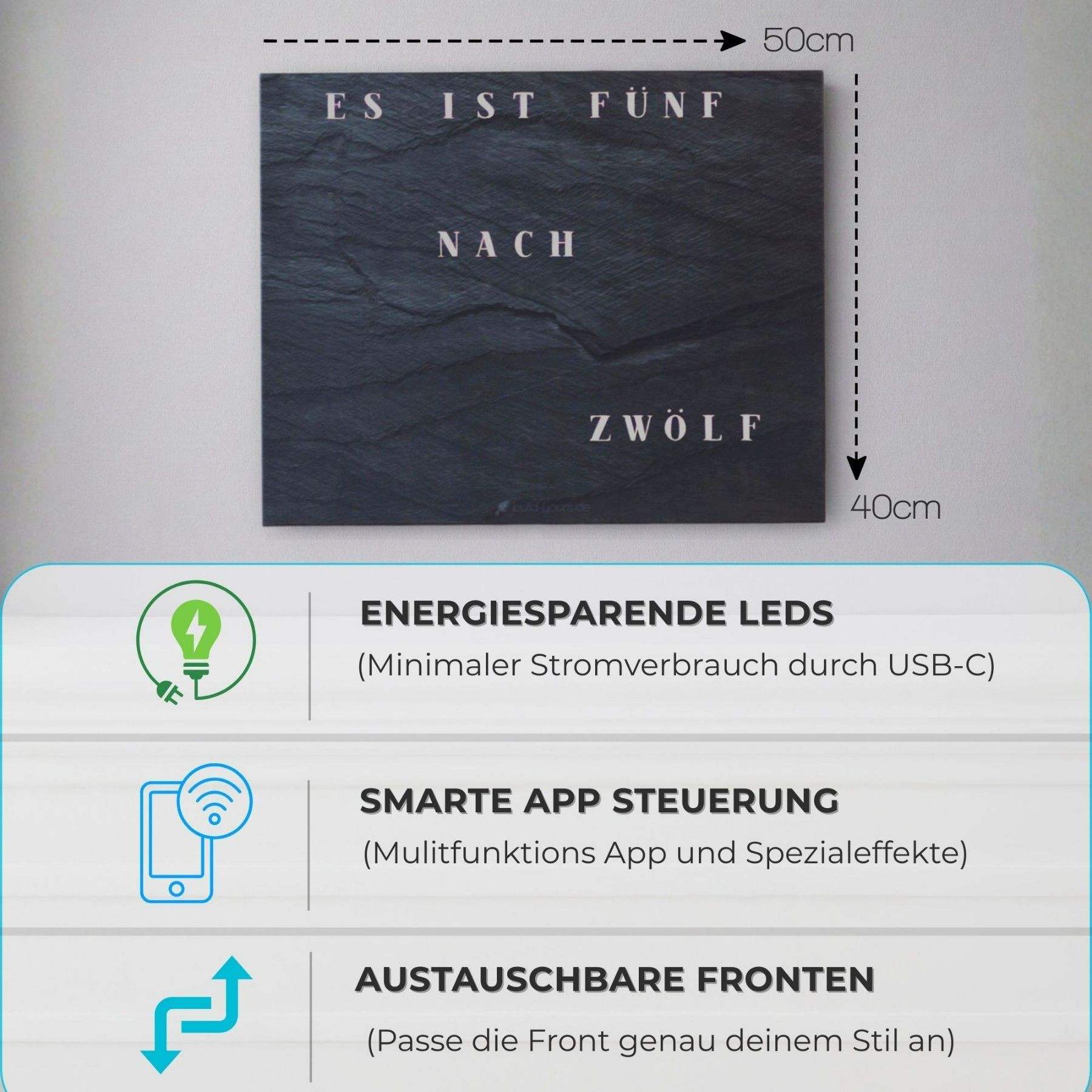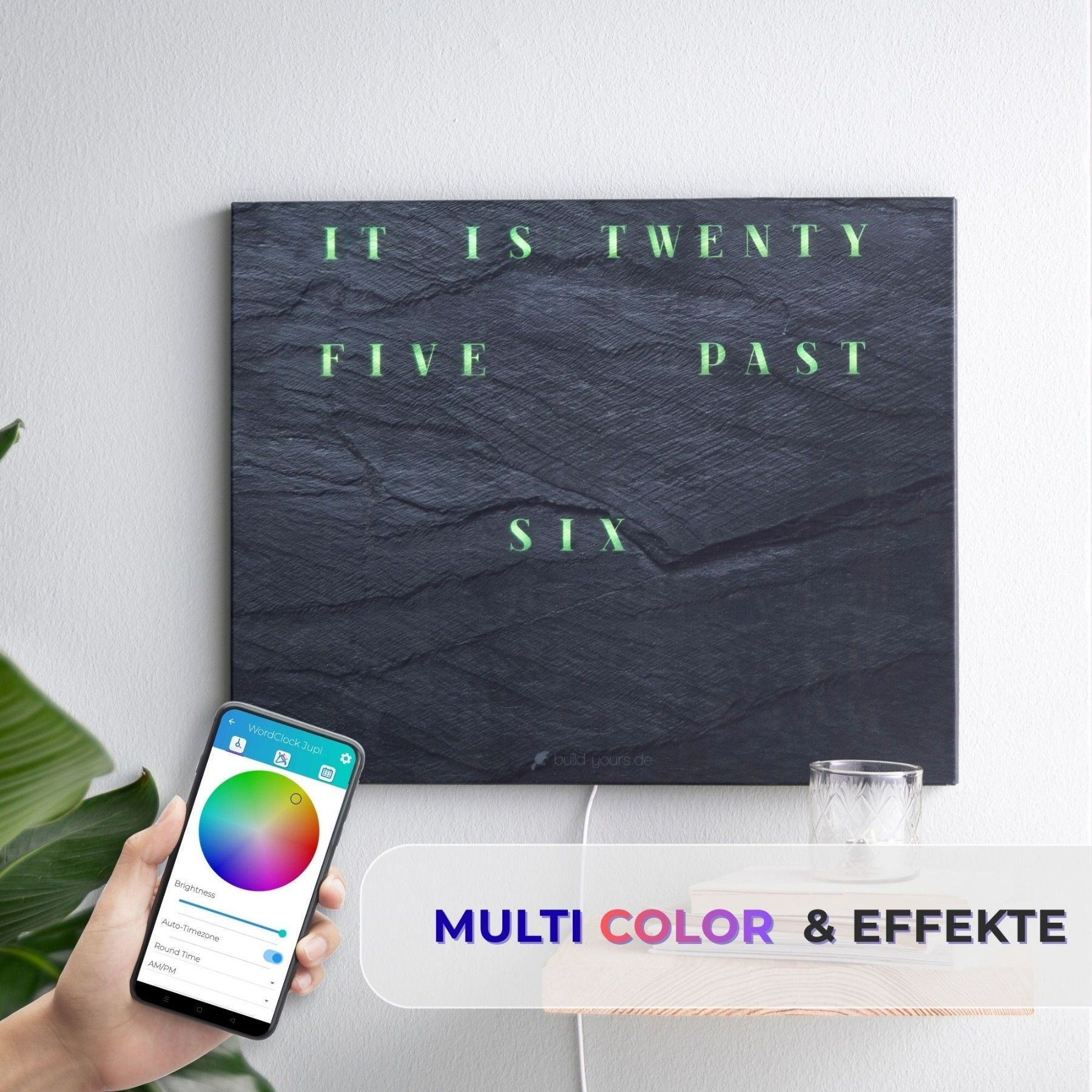 WordClock Jupiter Schiefer Optik - moderne Wortuhr - digitale LED Wanduhr