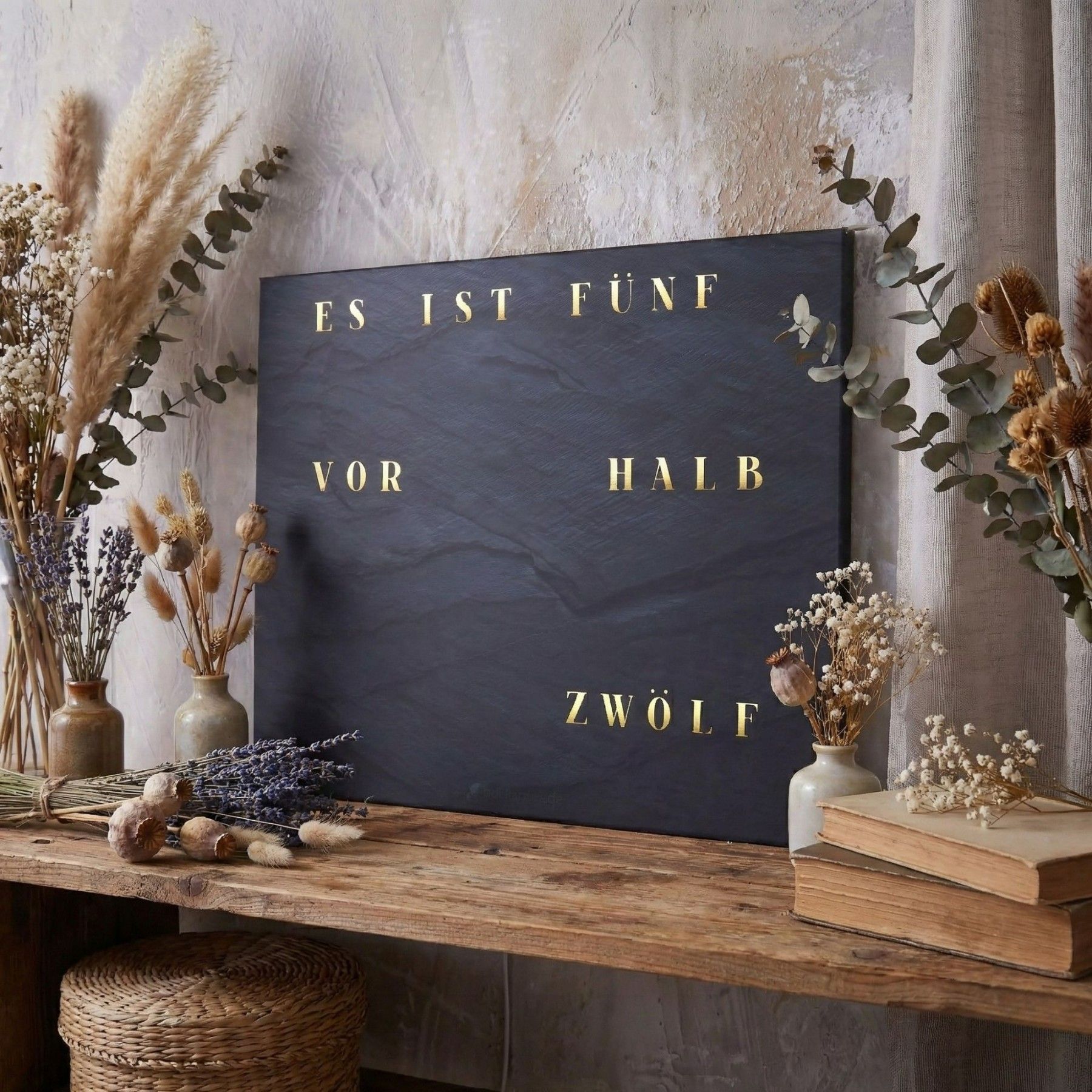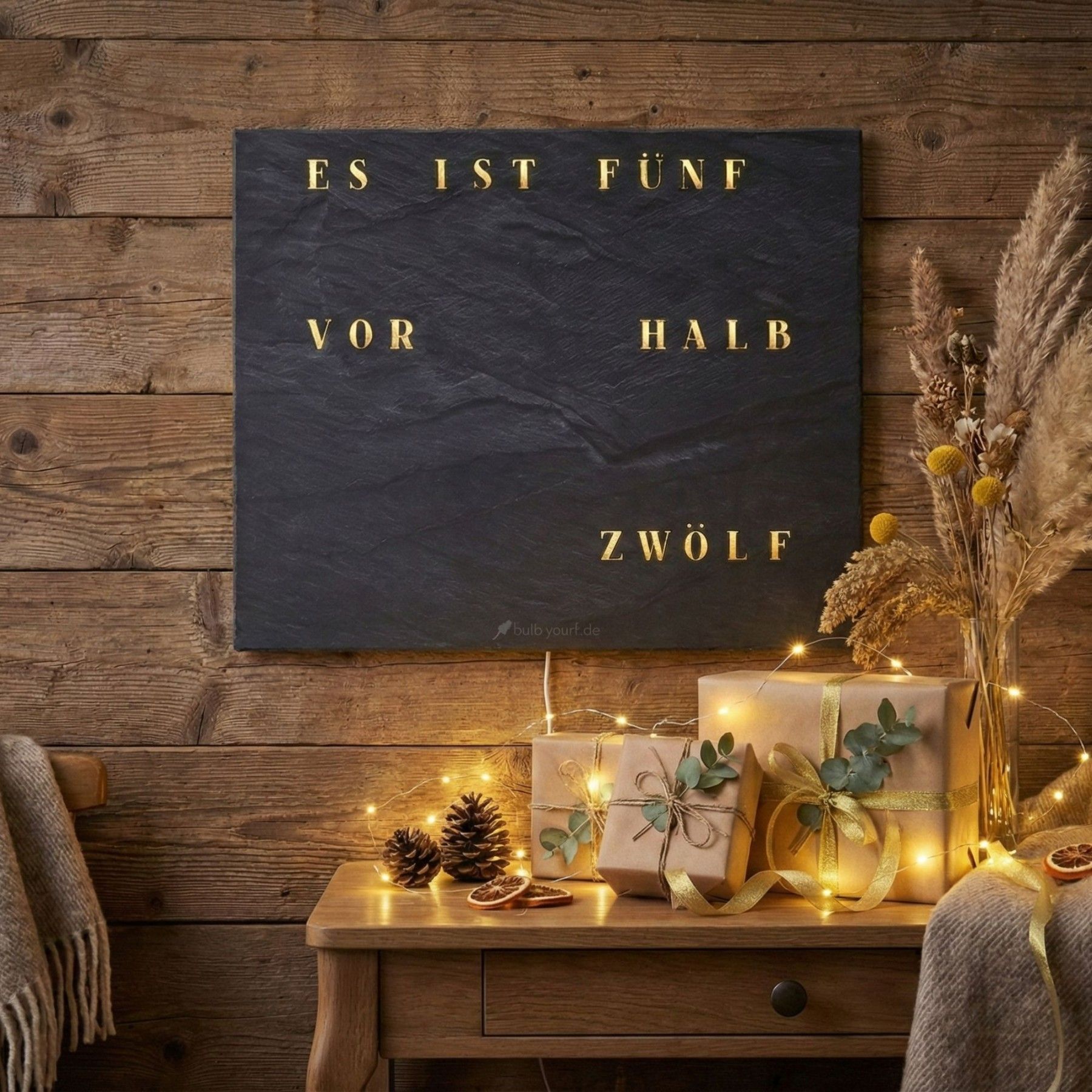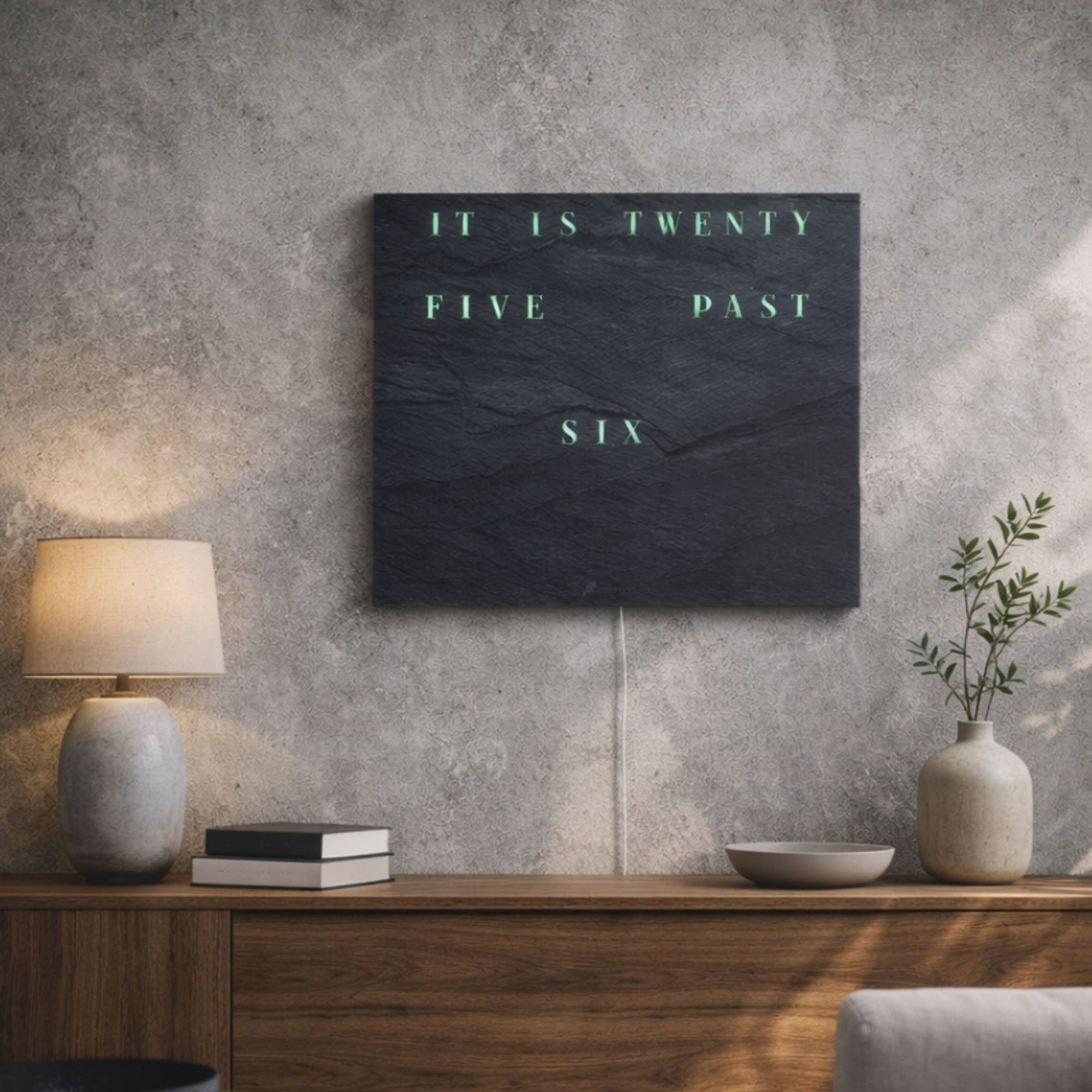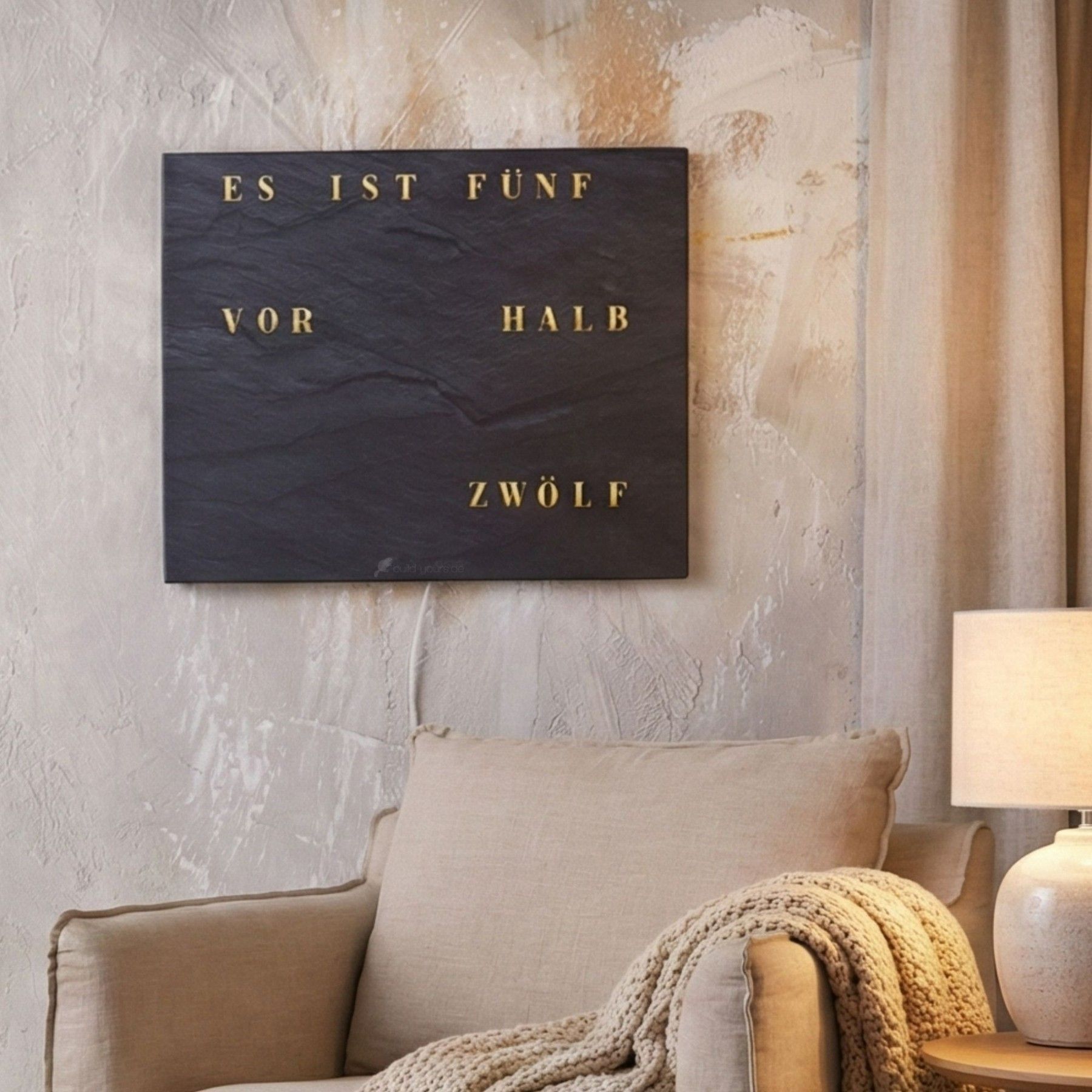 WordClock Jupiter Schiefer Optik - moderne Wortuhr - digitale LED Wanduhr