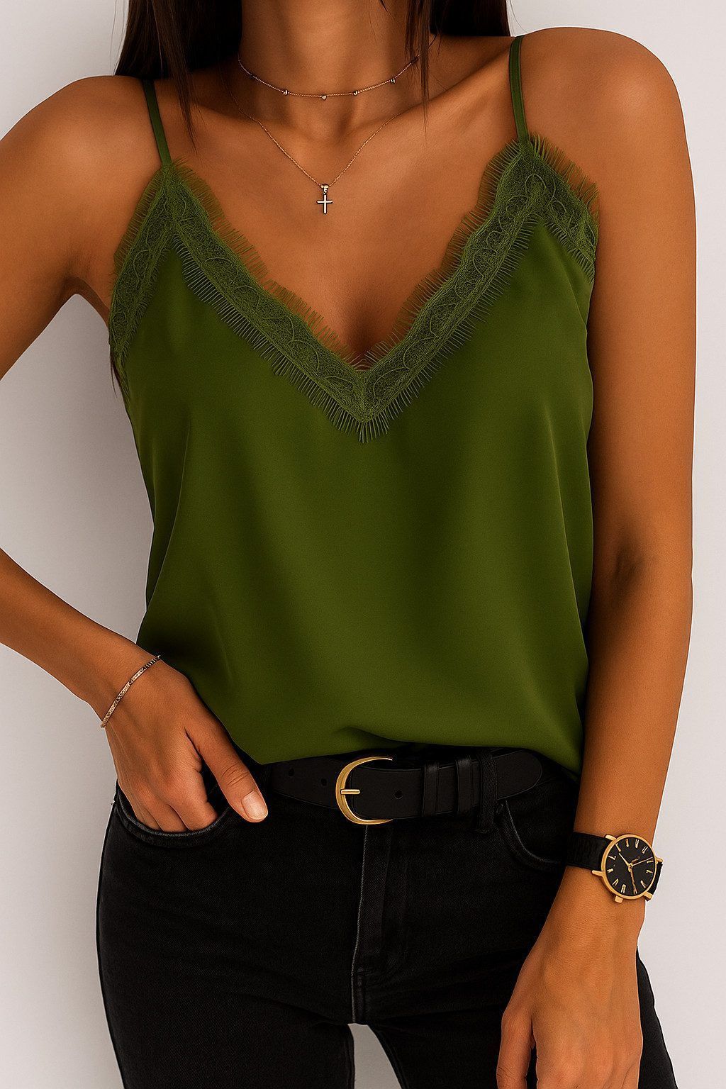 Worldclassca Damen Trägertop mit Spitze Sommer Spaghetti Tops Blusen Oberteil Locker