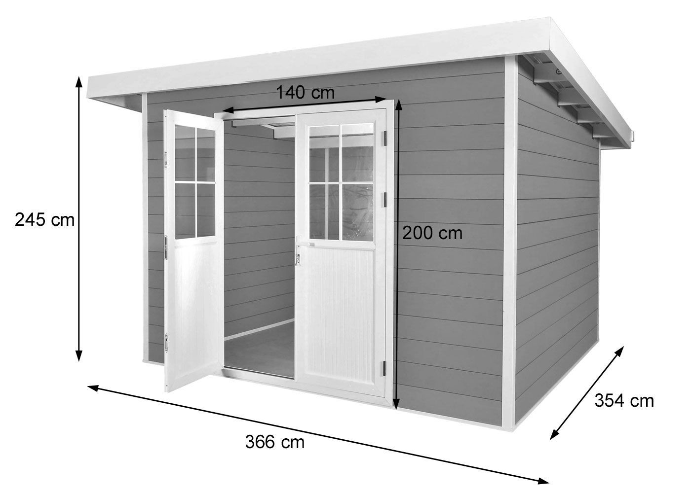 Mendler WPC Gartenhaus mit Pultdach HWC-J94, Gerätehaus Geräteschuppen, 245x366x354cm