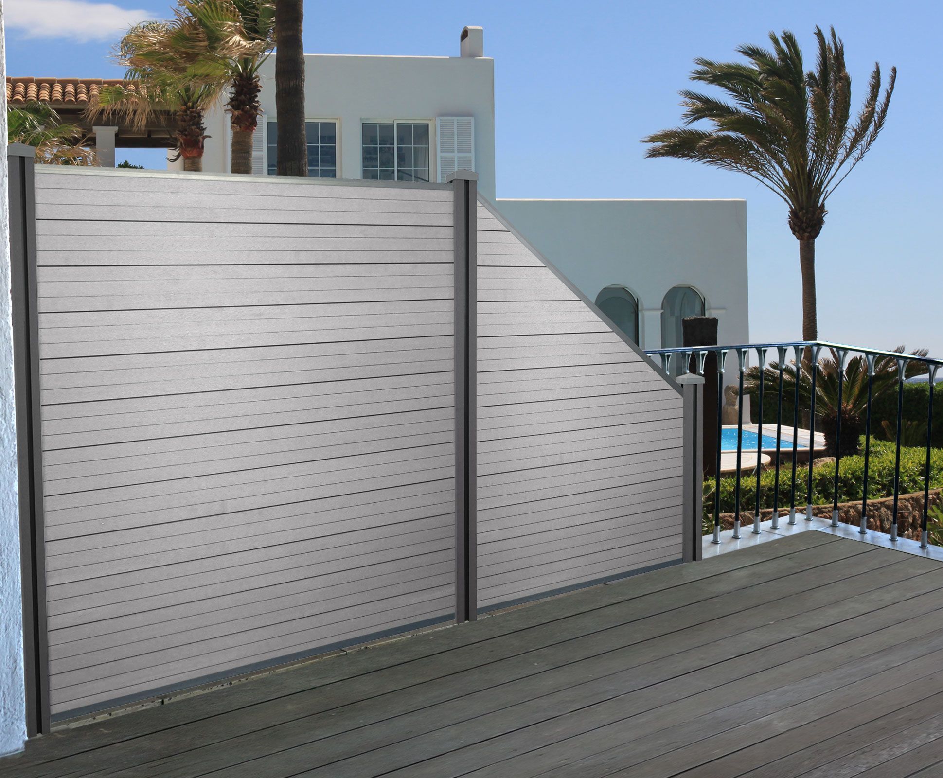 Mendler WPC-Sichtschutz Sarthe, Windschutz Zaun, WPC-Pfosten