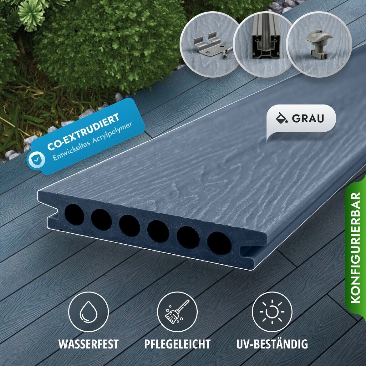 WPC Terrassendielen co-extrudierte Aluminium-UK, Klick-System Komplettset 6-90m²