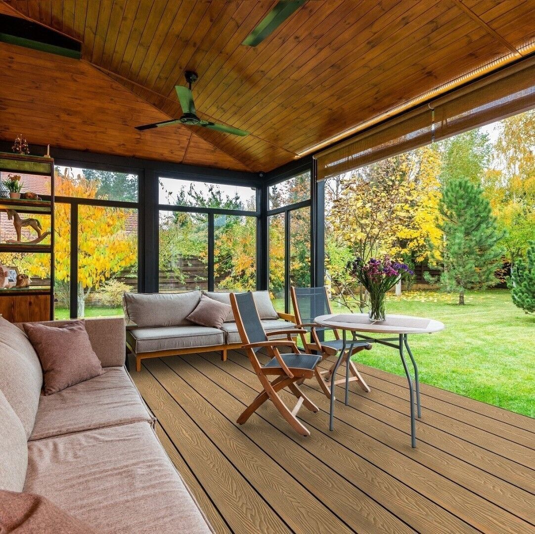 Teak (Goldenes Teakholz) WPC Systeminstallation, Grau (Helles Grau) WPC Systeminstallation, Antik (Antike Farben) WPC Systeminstallation