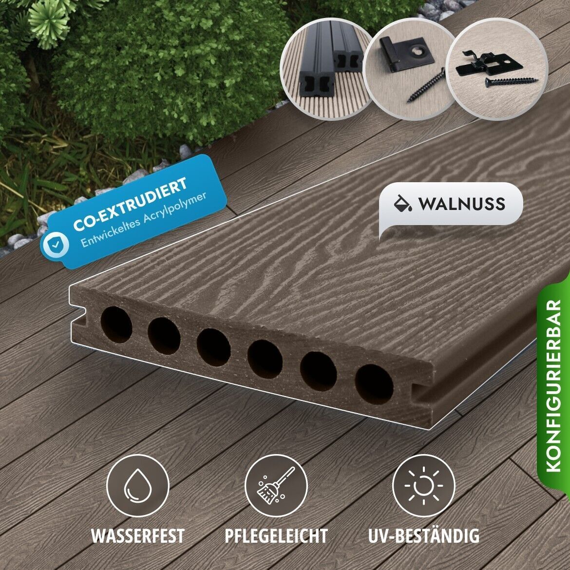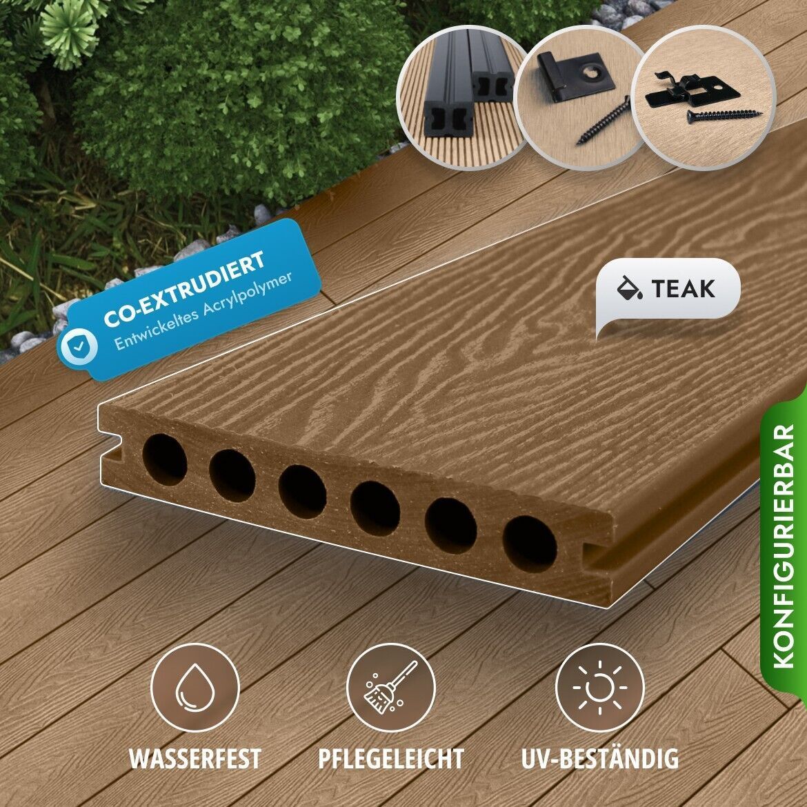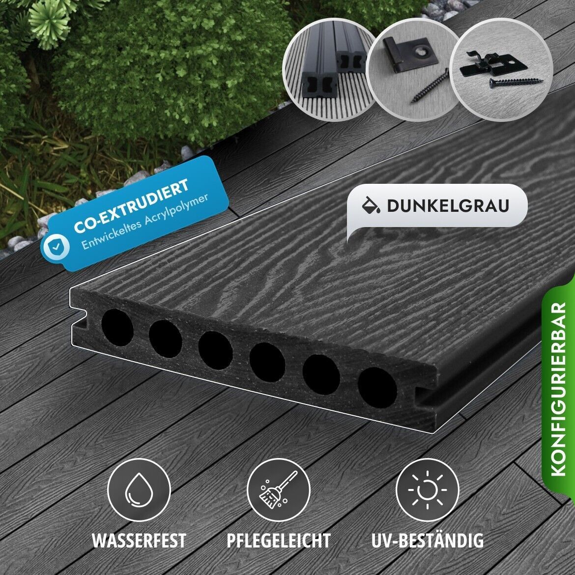 WPC Terrassendielen, Premium Diele 3.6m-5.0m Balkon Terrasse, Komplettbausatz 8-90 m²