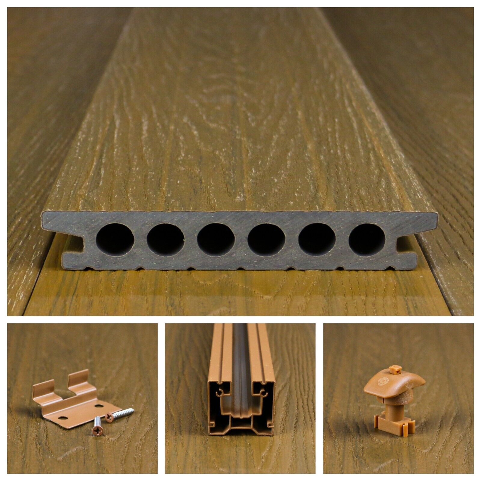 WPC Terrassendielen UV-beständig Kratzfestigkeit mit Alu-UK, Komplettbausatz 6-80 m²