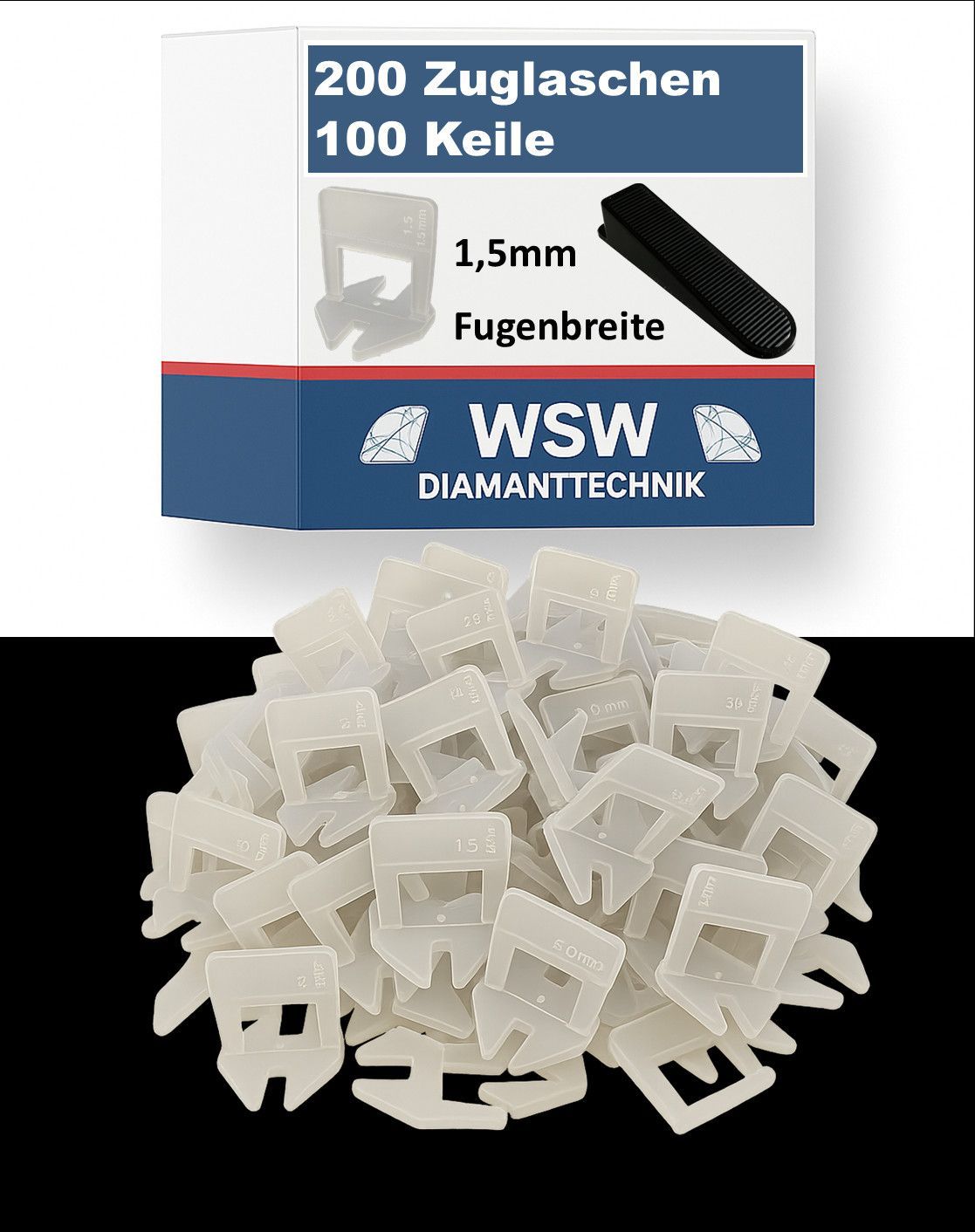 WSW Zuglaschen 1,5mm - 200 Laschen 100 Keile - Fliesen Nivelliersystem