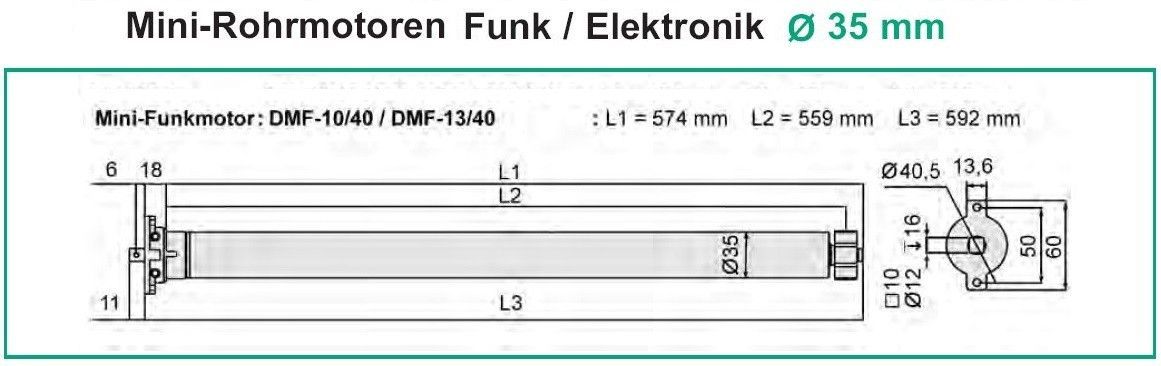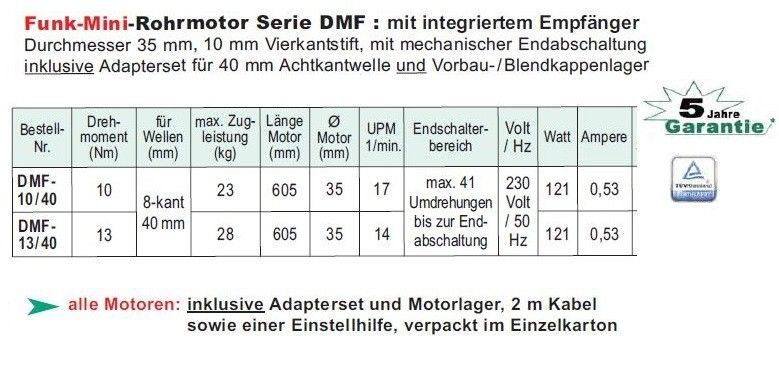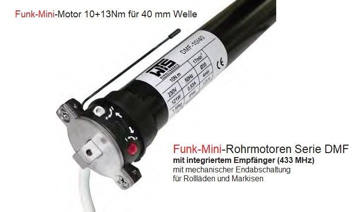 WTS - Funk-Mini-Rohr motor Serie DMF10/40 mit integriertem Empfänger 10Nm 17U/ min