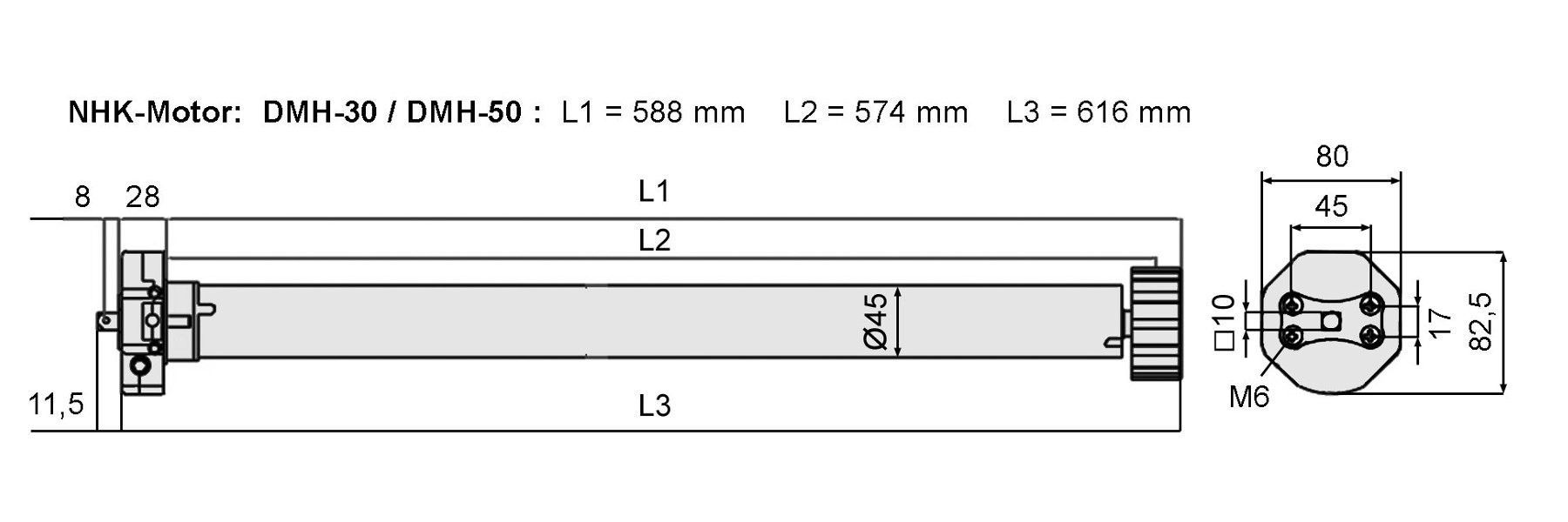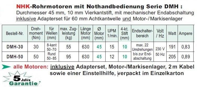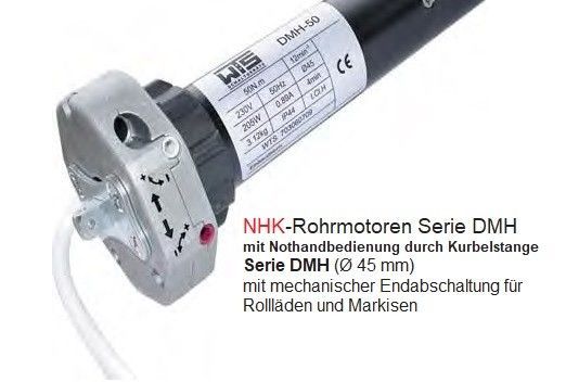 WTS - NHK-Rohrmotor Serie DMH-50 mit Nothandbedienung Kurbel, Ø 45 mm 50Nm 12U/ min
