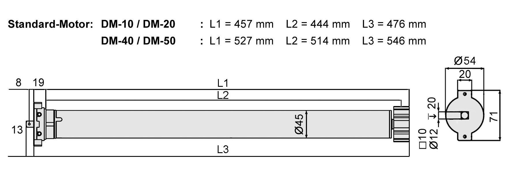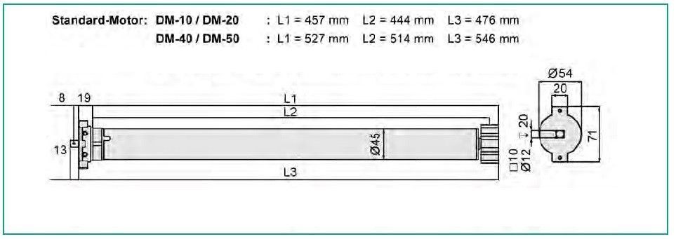 WTS - Rohrmotor Serie DM-50 mit mechanischer Endabschaltung 50Nm 12U/ min