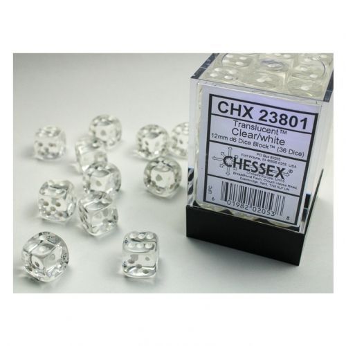 Würfel - 12 mm - Translucent Clear/white (Würfelset 36 x W6)