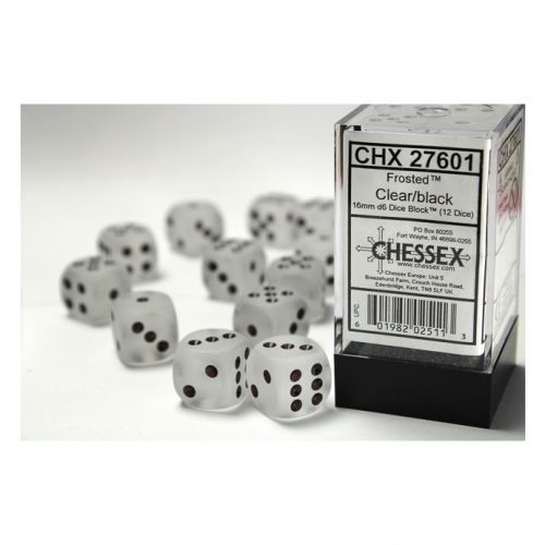 Würfel - 16mm - Frosted Clear/black (Würfelset 12 x W6)