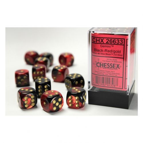 Würfel - 16mm - Gemini Black-Red/gold (Würfelset 12 x W6)