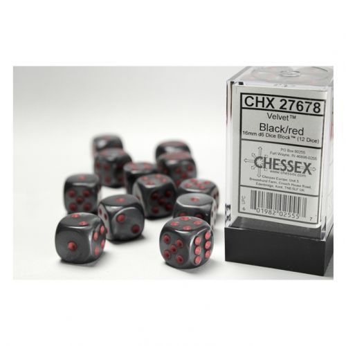 Würfel - 16mm - Velvet Black/red (Würfelset 12 x W6)