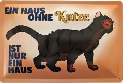 • Blechschild 30 X 20 cm Ein Haus ohne Katze ist nur ein Haus