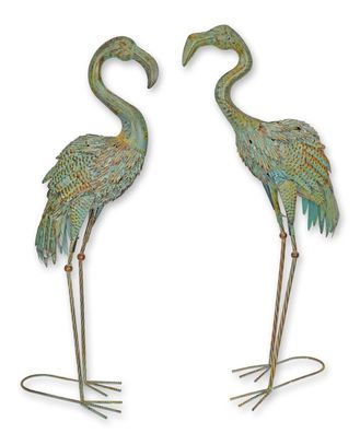 • Paar Skulpturen Flamingo für Haus und Garten Retro Design Dekoration