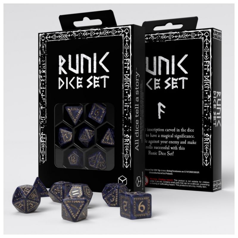 Q-Workshop Würfelset -Runic Mixed - blau/gold