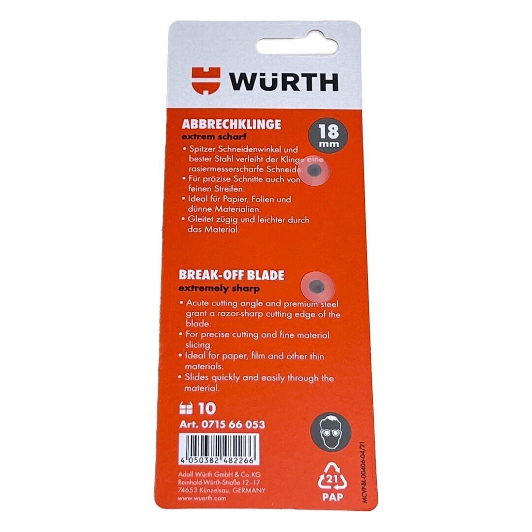 10x Würth 18mm Abbrechklingen extrem scharf Ersatzklingen Cuttermesser 07156605