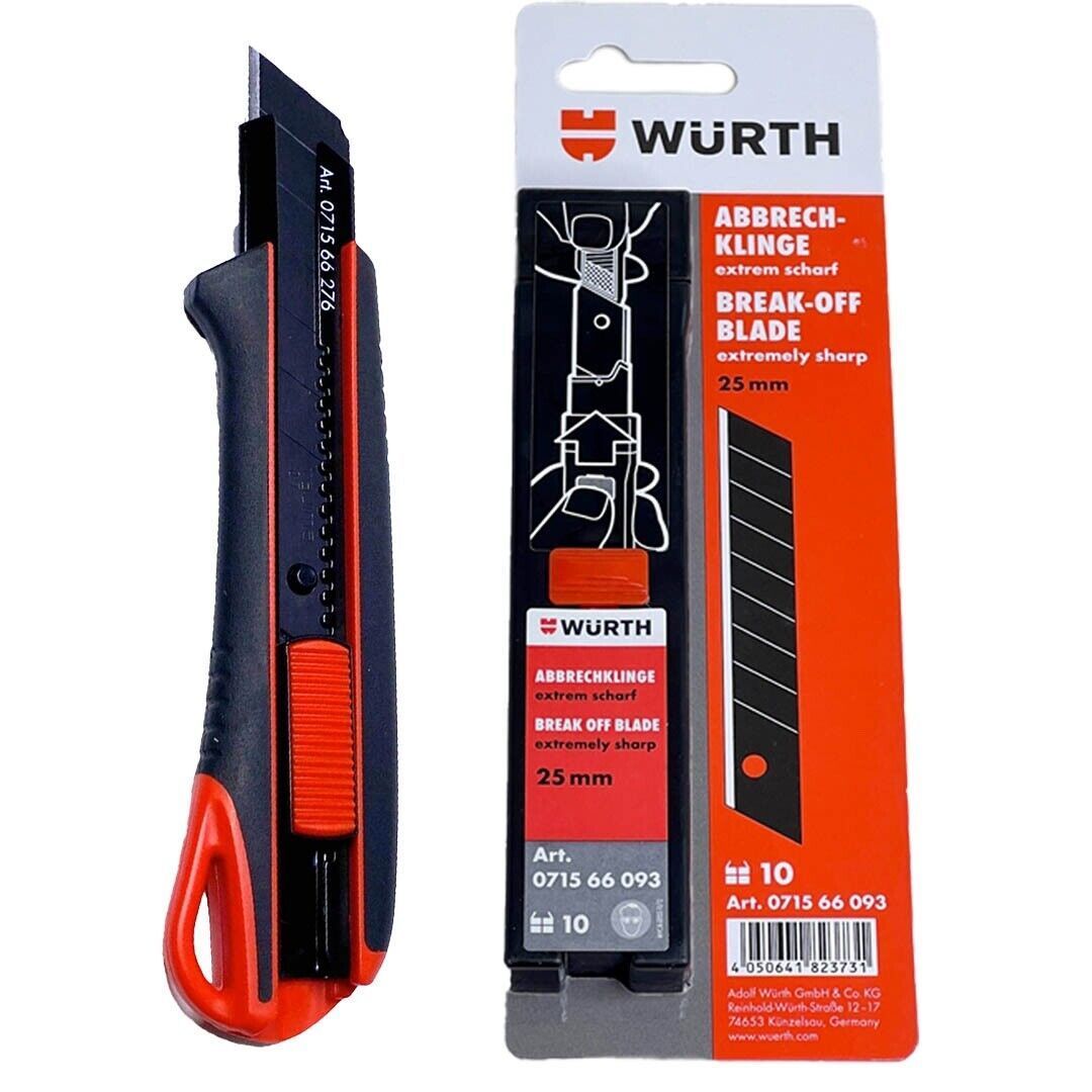 Würth 2K Cuttermesser 25mm + 11 Klingen black extrem scharf 071566276
