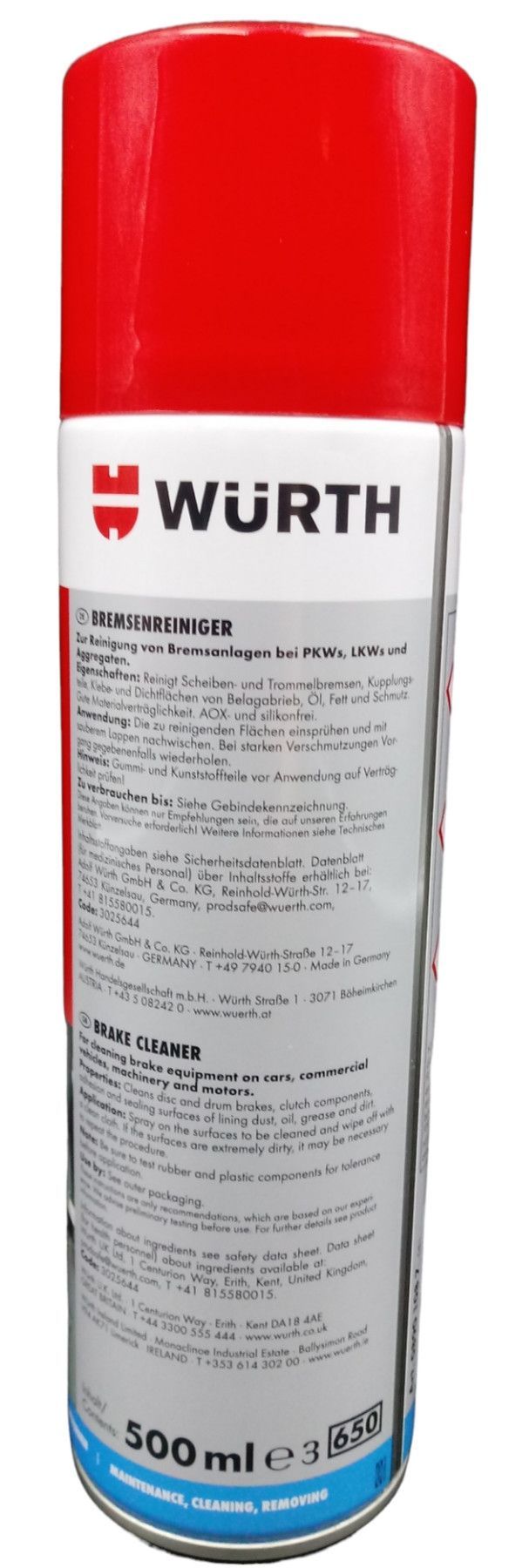 Würth Bremsenreiniger 500ml zur schnellen Beseitigung v. öligen/ fettigen Rückständen
