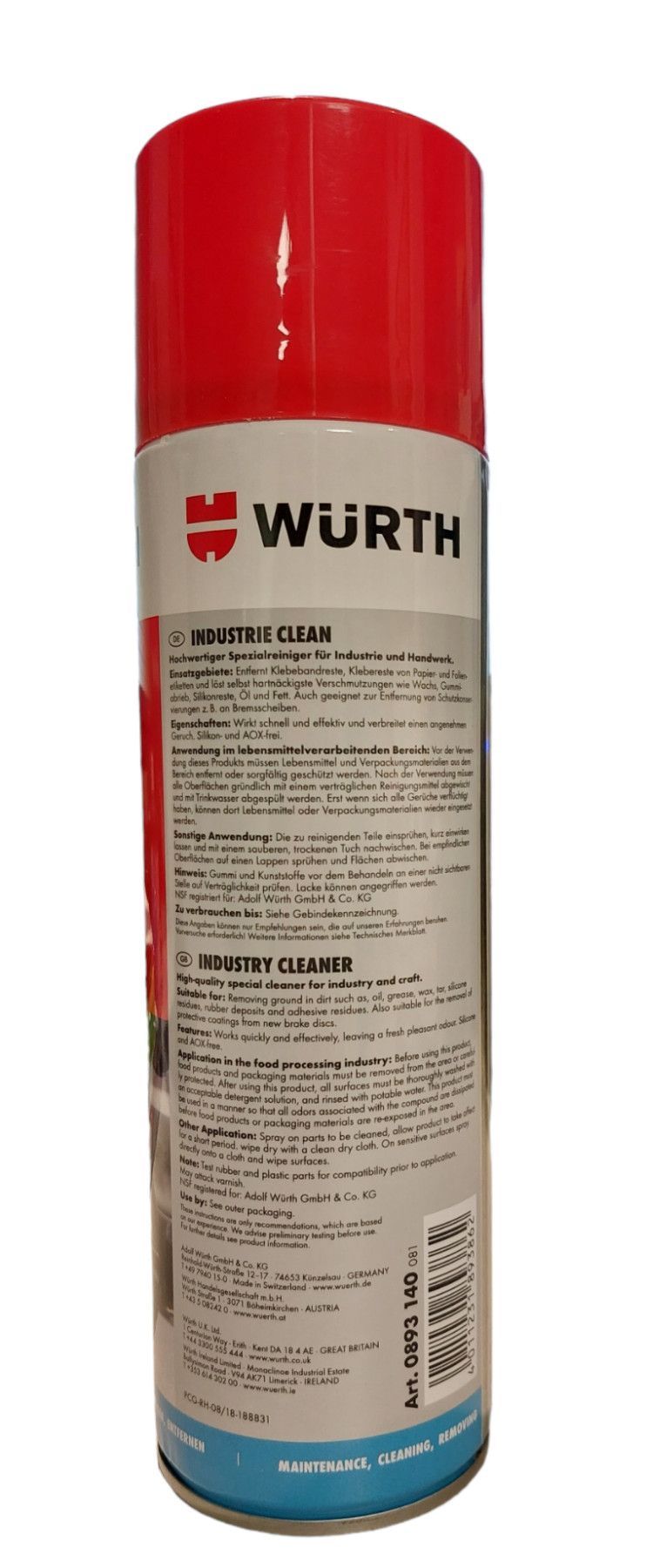 Würth Industrie Clean 500ml Etikettenentferner Reiniger 0893140 Kleberentferner