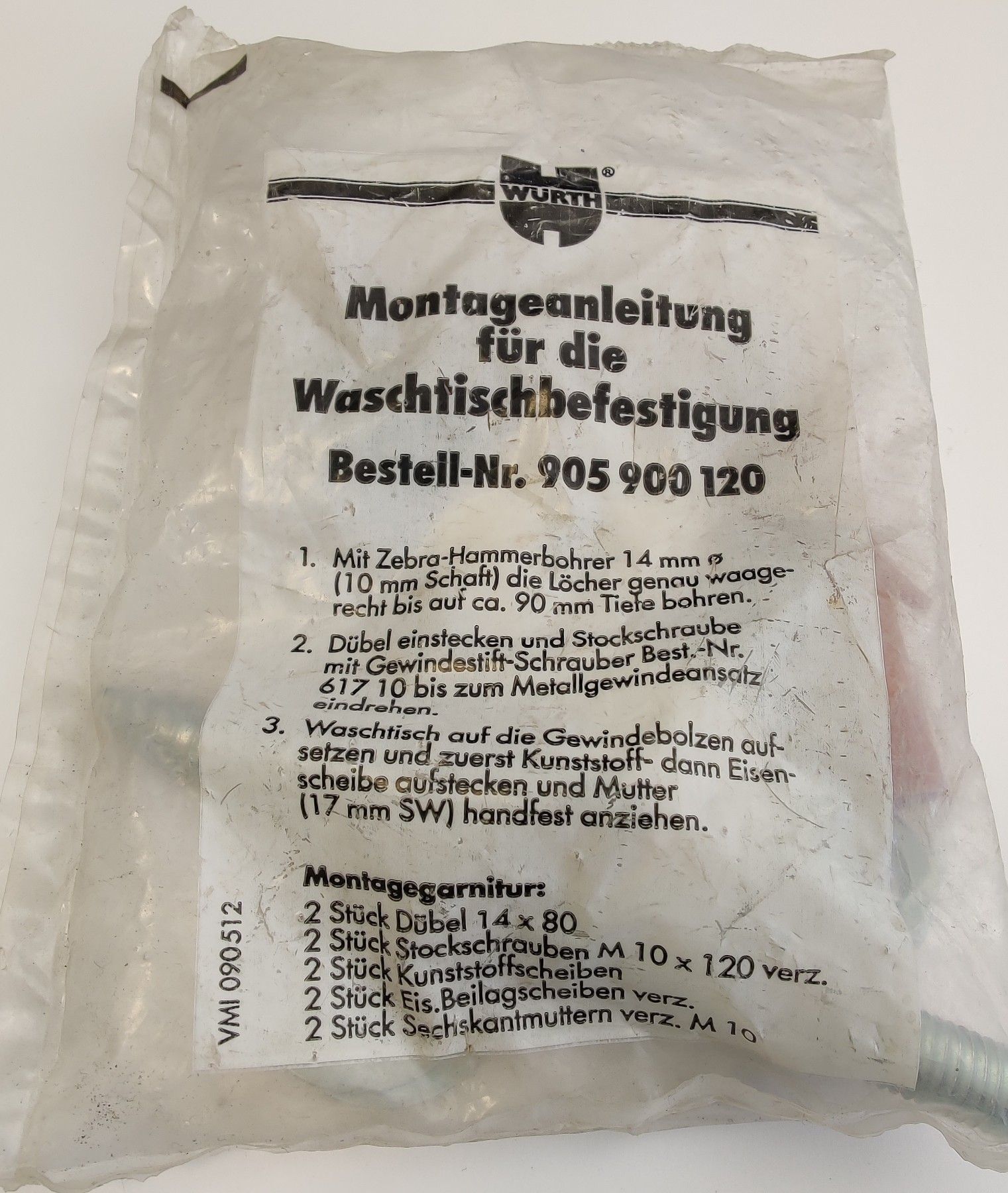 Würth Waschtischbefestigung M10 x 120 mm 905900120 M10 mit Dübel