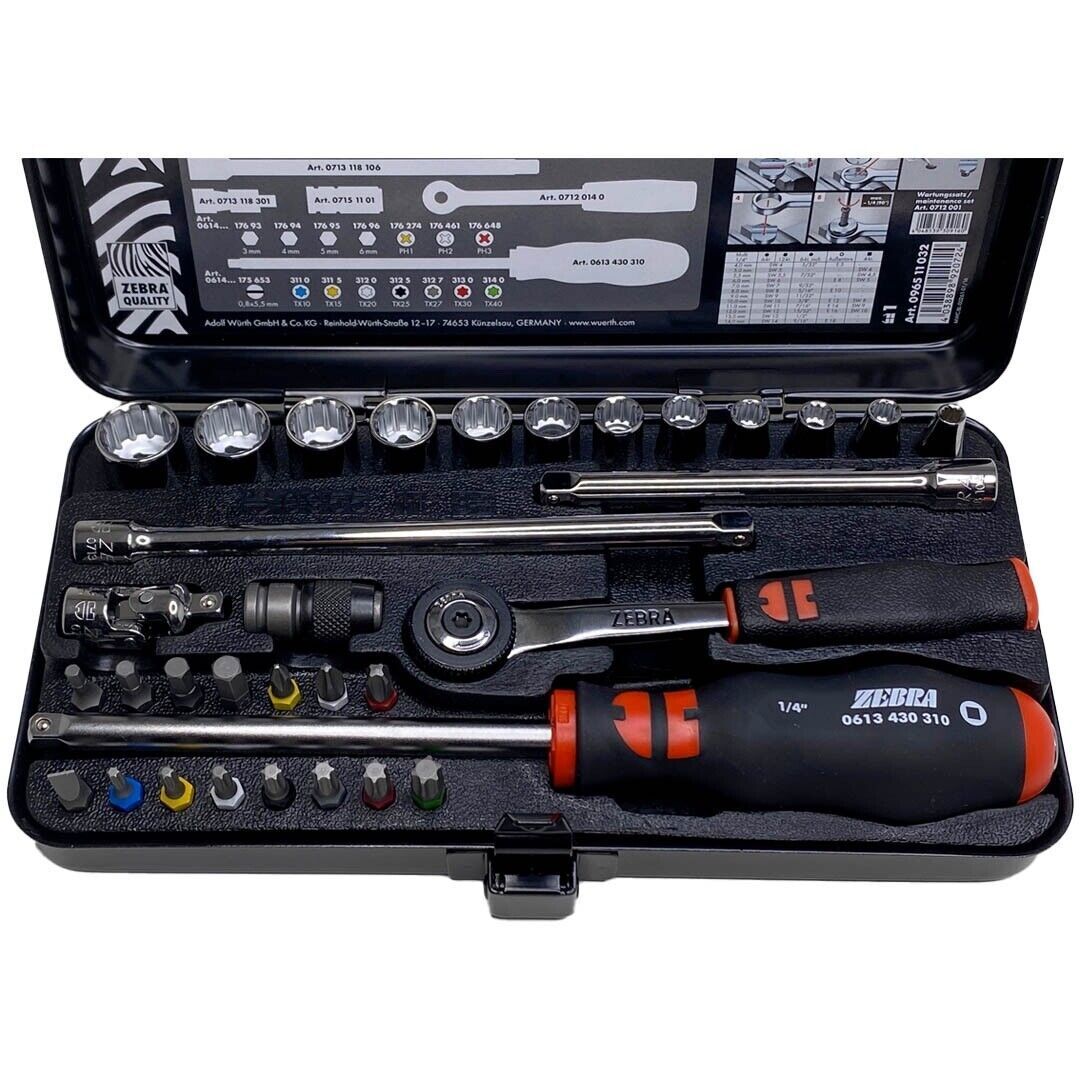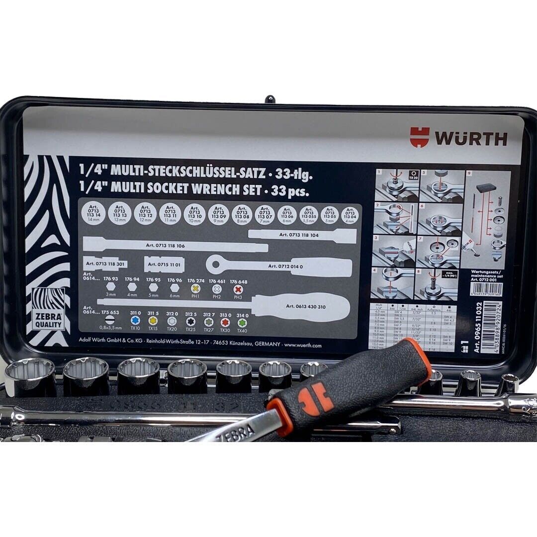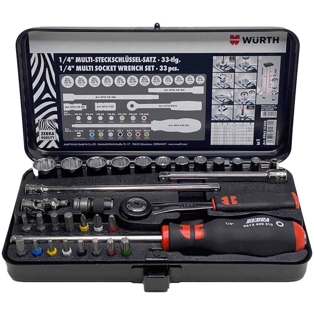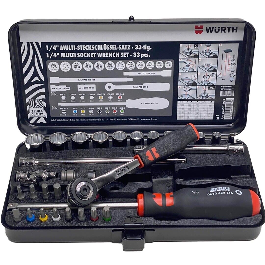 Würth Zebra 1/4 Zoll Steckschlüssel Satz 33tlg. Knarrenkasten Ratsche 096511032