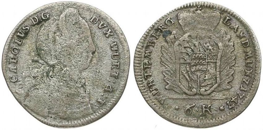 Württemberg 6 Kreuzer 1747 König "Karl Friedrich", selbstständig ab 1744, s