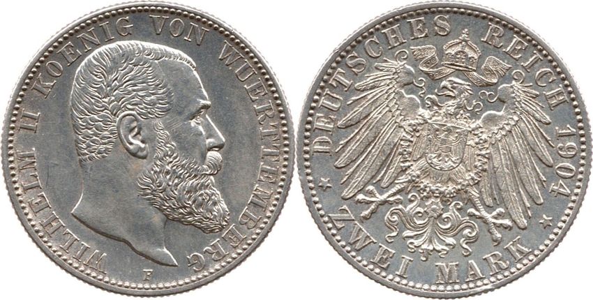 Württemberg Silbermünze 2 Mark 1904 F Wilhelm II. (1891-1918)