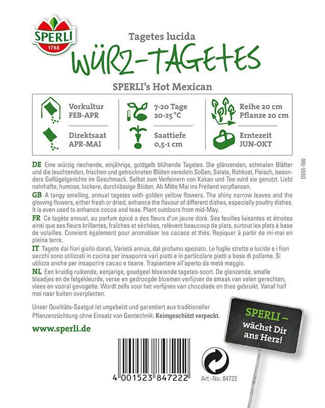 Sperli Würz- Tagetes Sperling´s Hot Mexican, essbare Blüten