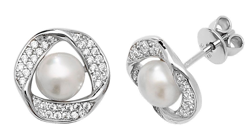 Wunderschöne 925 Sterling Silber Paar Ohrstecker mit Zirkonia, Süßwasser-Zuchtperle